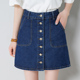 纯棉高腰蓝色牛仔裙a型半身裙韩国伞裙夏季排扣百搭一步裙A字裙女