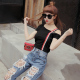 韩国露肩上衣韩版夏季学生性感显瘦短款小心机漏肩紧身t恤女短袖