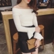 秋装短款性感显瘦长袖紧身t恤女韩国修身一字领露肩上衣 针织衫