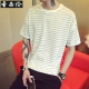 圣西伦条纹短袖T恤男圆领夏季简约宽松港风小清新韩版纯棉上衣服