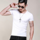 男士短袖t恤圆领纯白色体恤修身纯色打底半袖夏季男装衣服