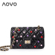 AOVO2017新款牛皮小方包欧美时尚单肩斜挎包简约复古马鞍包