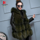 海宁新款女士连帽可拆卸袖子无袖过膝斗篷长款整皮狐狸毛皮草马甲