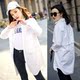 白衬衫女纯棉长袖2017春装新款中长款 衬衣休闲文艺宽松百搭V领潮