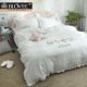 帛罗旺斯日式公主风简约纯色绣花水洗棉床上四件套双人被套床单