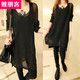 2017春季连衣裙打底裙长款网纱透视减龄收腰裙大码女装200斤黑色
