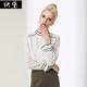 狄黛春秋时尚新款 V领时尚钉珠亮片性感透视网纱长袖短款打底衫女