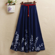 旭宁2017春秋棉麻刺绣半身裙长裙民族风拼接裙绣花裙大摆裙子文艺
