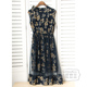 国内单 2017夏季新款女装 时尚花朵印花系带网纱拼接连衣裙子