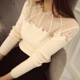 春装新款甜美性感透明装修身长袖套头针织刺绣蕾丝打底衫女冬毛衣