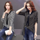 V领衬衫雪纺衫女2017年春新款韩版显瘦宽松五分袖不规则条纹上衣