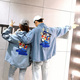 春季新款女装个性卡通嘻哈宽松外套中长款街头大码牛仔衣潮大码浅