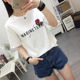 学生短袖T恤女 2017夏宽松半袖圆领印花小衫花边棉新款短款上衣潮