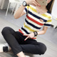 蝶莉婷圆领短袖t恤女修身韩版学生春夏打底撞色粗细条纹上衣2017
