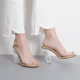 凉鞋女夏2017新款高跟鞋粗跟一字扣带露趾女鞋灰姑娘透明水晶鞋潮
