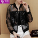 2017秋装春装新款女装韩版宽松显瘦镂空蕾丝上衣长袖蝴蝶结小衫女