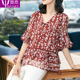雪纺衫女短袖2017时尚新款夏季宽松大码V领显瘦碎花T恤女装上衣潮