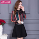 新款连衣裙春秋2017韩版时尚修身条纹拼接雪纺假两件打底A字裙子