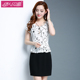 2017夏季新款韩版短袖雪纺假两件时尚印花连衣裙修身A字裙大码女