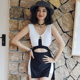 韩国性感黑白露背大码连体泳衣女式裙式三角显瘦遮肚小胸聚拢泳装