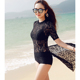 性感蕾丝衫大码连体温泉泳衣女平角显瘦遮肚韩国大胸钢托聚拢泳装