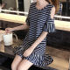 连衣裙女夏装2017新款女装气质时尚韩版中长款条纹修身显瘦裙子