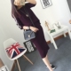 2016秋季新款韩版修身长袖针织开衫女毛衣外套鱼尾连衣裙两件套装