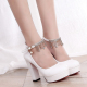 2016春秋季新款粗跟超高跟单鞋防水台圆头浅口女鞋尖头优雅女潮鞋