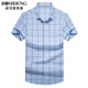 波司登男装 短袖衬衫男青年男士商务休闲纯棉免烫衬衣格子衬衫男