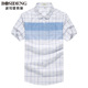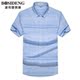 波司登男装衬衫 男短袖衬衣条纹衬衫男半截袖英伦海军风衬衫上衣