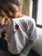 个性潮款玫瑰花刺绣百搭做旧破洞圆领短袖T恤春装新款打底体恤衫