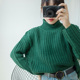 韩国加厚高领卷边破洞针织粗线毛衣秋冬外穿毛线衣学生打底衫上衣
