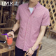 2017夏季新款男士休闲格子短袖衬衫帅气百搭韩版修身衬衣潮流寸衫