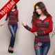民族风女装上衣2017春秋新款刺绣花修身大码长袖女T恤针织打底衫