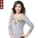 2016春装新款中年女装宽松显瘦打底衫民族风v领纯棉长袖t恤妈妈装