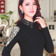 秋冬装加绒保暖修身打底衫女长袖加肥大码娃娃领蕾丝网纱加厚上衣