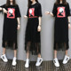 2017夏装大码女装胖mm连衣裙套装时尚蕾丝裙子休闲长款T恤两件套