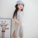 禾陶成衣原创 女童中式斜襟单开叉长袍 亲子款纯棉针织条纹旗袍