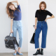 韩国秋季学生显瘦高腰牛仔直筒裤女BF修身休闲哈伦牛仔裤长裤子潮