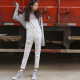 韩版春夏季BF白色破洞牛仔裤背带裤女显瘦小脚吊带裤连体裤长裤潮