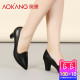 奥康春季新款女鞋浅口粗跟低帮鞋时尚尖头纯色职业单鞋牛皮工作鞋