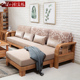 实木沙发组合 新中式转角贵妃木架布艺沙发橡木客厅可拆洗家具