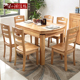 实木餐桌椅组合 折叠圆形橡木中式简约现代4人6人 1.2米圆桌包邮