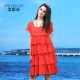 金影奇大码女装2014夏装新款胖mm复古印花吊带衫背心吊带裙8017