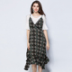 2017春季新款大码女装两件套雪纺上衣方格背心裙连衣裙胖mm套装女