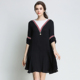 2017夏装新款大码女装胖mm连衣裙荷叶袖假两件黑白撞色拼接连衣裙