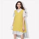 大码女装胖mm2017夏款拼接撞色荷叶边假两件连衣裙显瘦200斤a字裙