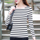 甄度长袖黑白条纹t恤女体恤修身紧身T衫新款打底衫大码女装上衣女