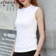 甄度半高领无袖女T恤螺纹棉质纯色修身短款打底衫大码女装上衣夏