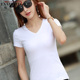 白色V领短袖t恤女纯色棉质修身半袖女休闲运动体恤衫夏大码打底衫